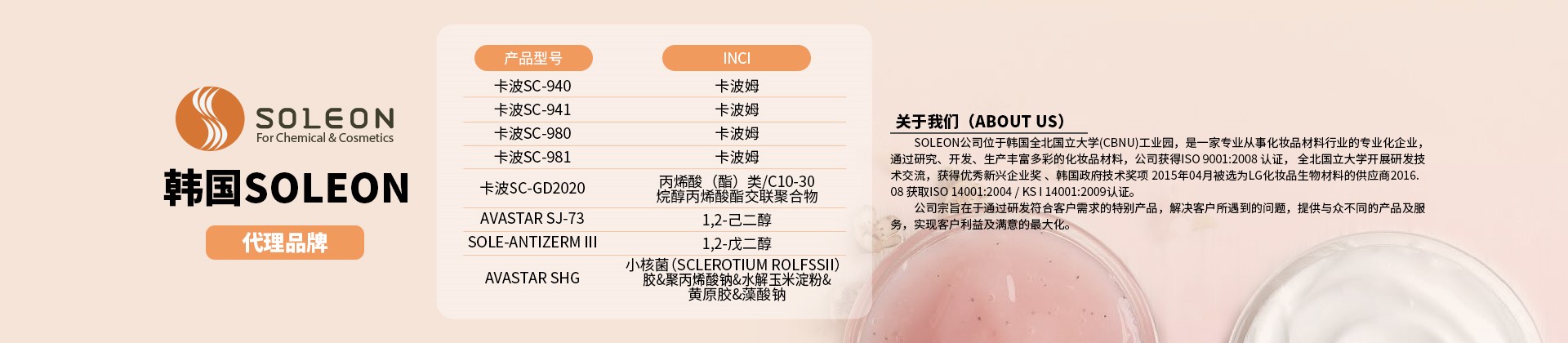 DAOYI International Trade (Guangzhou) Co., Ltd. is located in the Agile Science and Technology Innovation Center in the Guangzhou Private Science and Technology Park. It is an international trading company dedicated to providing global high-quality cosmetic raw materials agents. The agent brands: Malaysia Kepong Group (KLK OLEO), South Korea ( SOLEON CO., LTD) Korea (AVASTAR) cooperation brands: German BASF, British CRODA, etc. The company has laboratories for technical discussions with many domestic and foreign companies, in-depth understanding of the latest industry trends, providing customers with the latest market information, technical support for research and development of popular products, insisting on product quality as life, agency brands as driving force, and innovation as development The business philosophy of creating value for customers, win-win cooperation and create a better future!